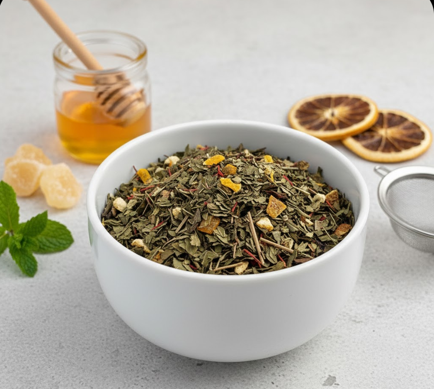 Description-This velvet-soft blend uses marshmallow root and slippery elm to coat raw tissues, while ginger and lemon provide a warming, restorative boost.